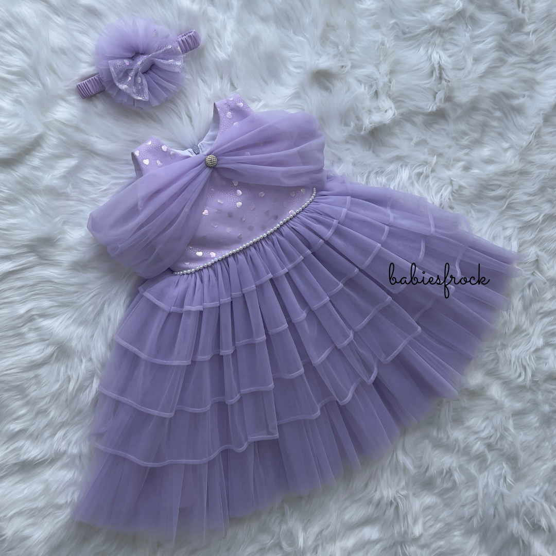 Introducing our enchanting baby girl gown in a serene shade of light purple. This baby girl gown features a beautifully fluffy design that's perfect for your little one's special moments. Crafted with care, it radiates elegance and charm, making it an ideal choice for various occasions. Your baby girl will shine in this lovely gown, exuding a touch of grace and style.